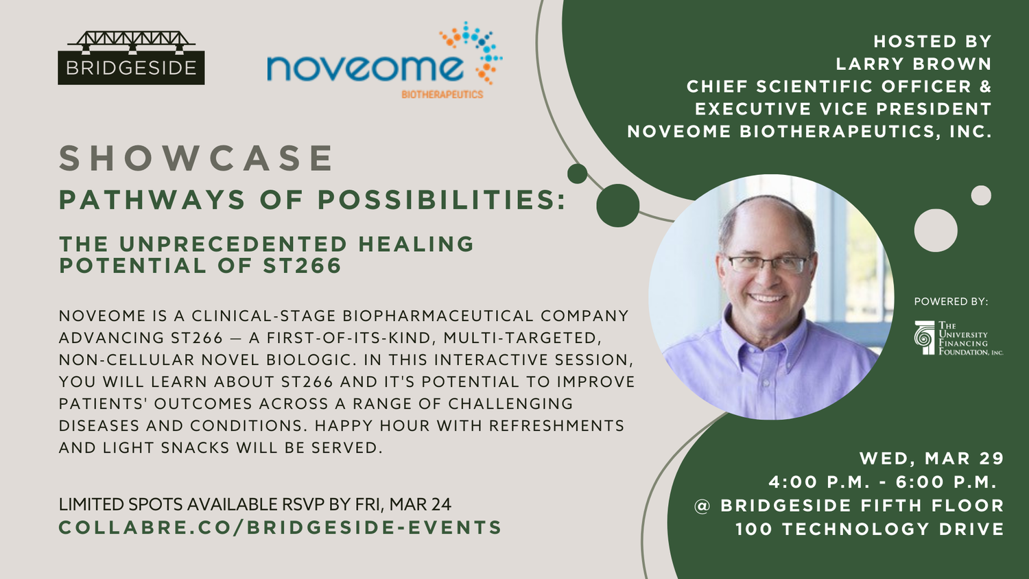 In this interactive session, you will learn about ST266 and it's potential to improve patients' outcomes across a range of challenging diseases and conditions. Happy hour with refreshments and light snacks will be served.